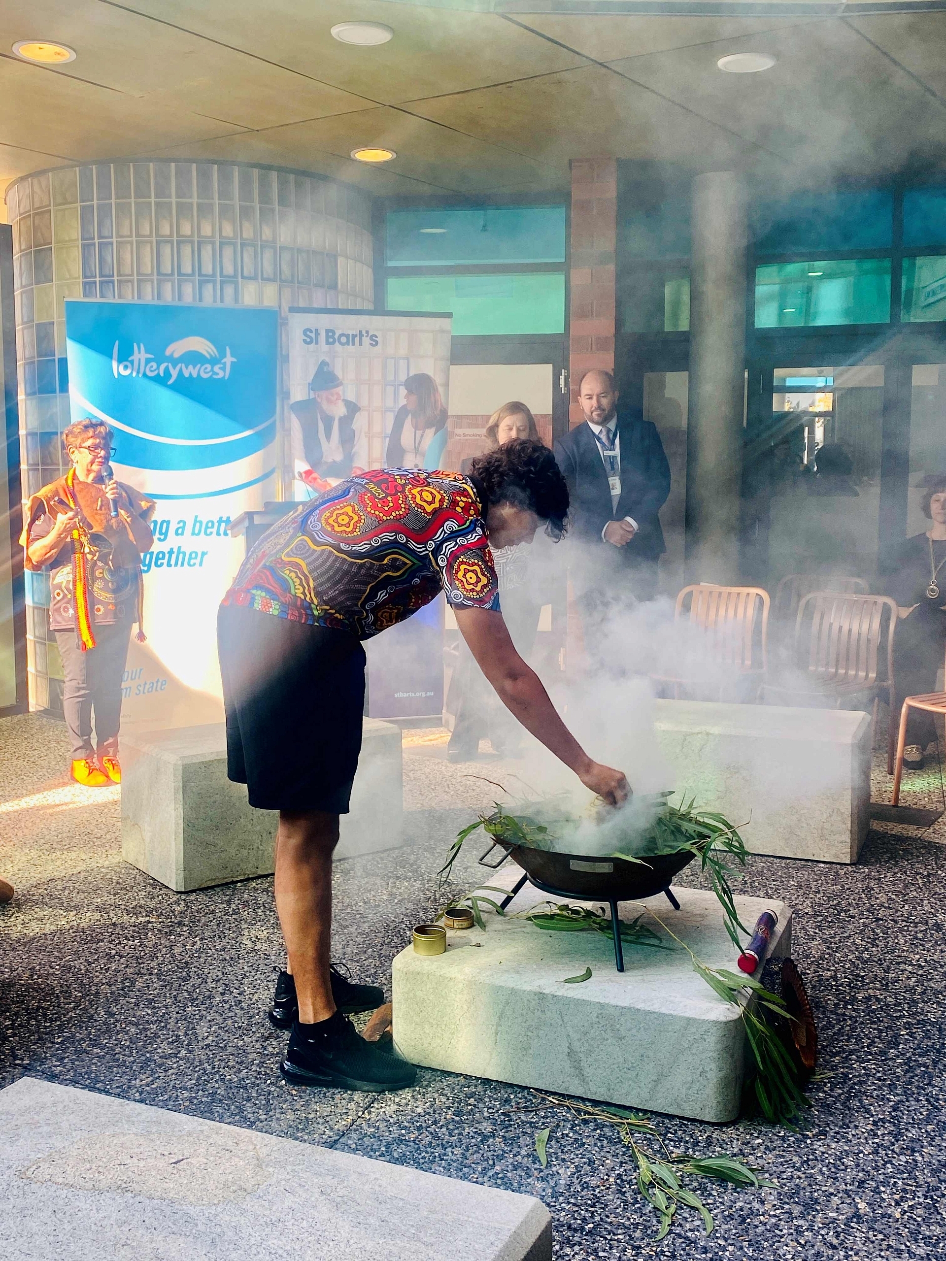 It was a pleasure to have Aunty Robyn Collard, with the assistance of her grandson Tryse, attend to guide us through a smoking ceremony in our new yarning circle.
